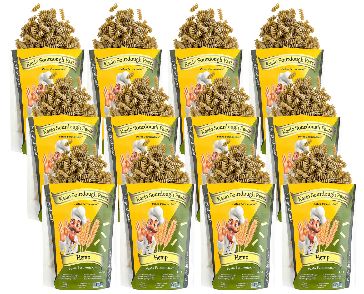 Farine de semoule de blé dur, farine de chanvre biologique, eau de source naturelle, levain naturel, huile d'olive vierge extra